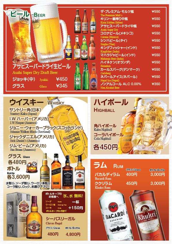 ドリンクメニュー